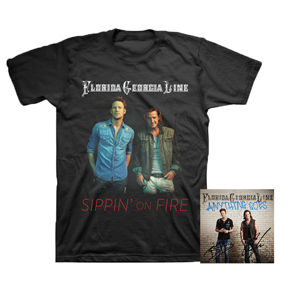 Pick up this Florida Georgia Line “Sippin’ On Fire” Tee, available only in our online store, plus an Autographed booklet of Anything Goes while supplies last!