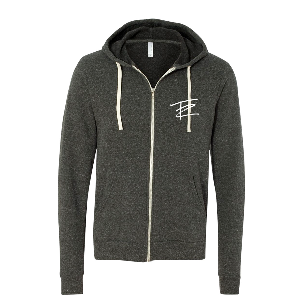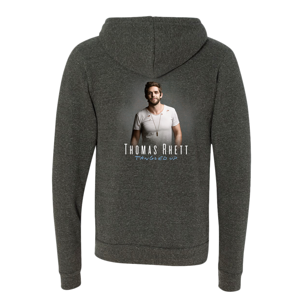 Pick up this exclusive Thomas Rhett Zip-up Charcoal Hoodie while supplies last! This fashionable tri blend hoodie by Bella Canvas is made of 50% polyester/37.5% combed and ring spun cotton/12.5% rayon.